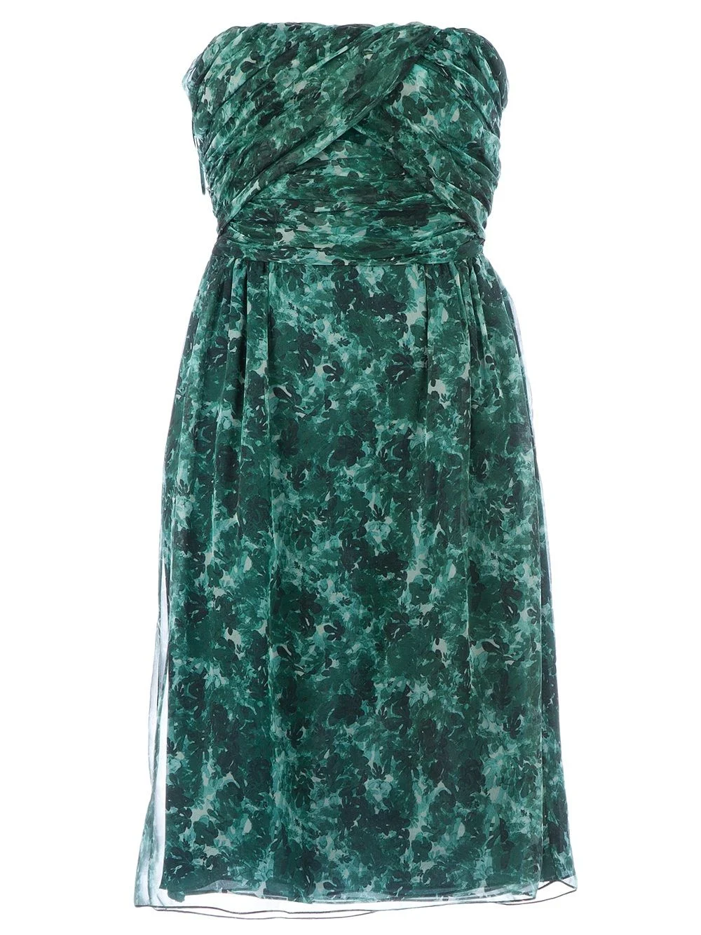 printed strapless dress Green and white silk and cotton-blend strapless dress from Giambattista Valli featuring a bandeau top with draping, a fitted waist, an abstract print and a knee length. Made in Italy Composition Outer: Polyamide 84%, Spandex/Elastane 16% Silk 100%, Viscose 50%, Cotton 50% Washing instructions Dry Clean Only