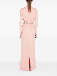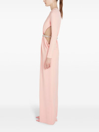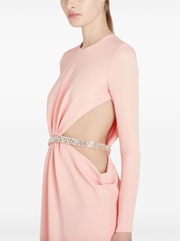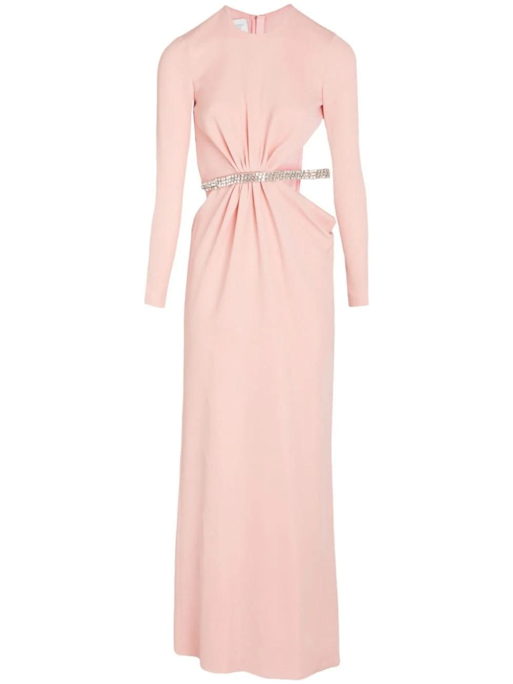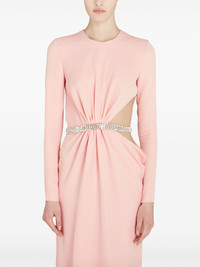 rhinestone embellished long dress Highlights - Rose quartz pink - Rhinestone embellishment - Concealed rear zip fastening - Round neck - Long sleeves - Openwork areas - Cuff zips - Long length Made in Italy Composition Rhinestone 100%, Viscose 96%, Elastane 4%