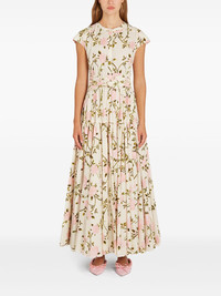 Rosier-print poplin dress Highlights - Ivory white - Concealed front button fastening - Round neck - Cap sleeves - Pleated skirt Made in Italy Composition Cotton 100% SIZE & FIT Measurement CHEST 35.43 in(90 cm) HIPS 40.15 in(102 cm) LENGTH 54.33 in(138 cm) WAIST 27.55 in(70 cm)