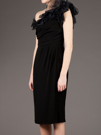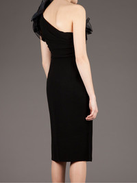 ruffled one-shoulder dress Black silk-blend sleeveless one-shoulder dress from Giambattista Valli featuring an asymmetrical neckline, ruffled detailing to the front and sleeve, draping at the front, a fitted waist and a knee length. Made in Italy Composition Silk 100%, Viscose 100% Washing instructions Dry Clean Only