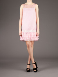ruffled sleeveless dress Light pink silk and linen-blend sleeveless dress from Giambattista Valli featuring a boat neck, a sheer panel at the top, a zip to the back and a ruffled hemline. Made in Italy Composition Outer: Linen/Flax 82%, Viscose 18% Lining: Silk 100% Washing instructions Dry Clean Only