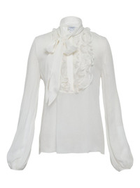 ruffled-trim blouse Highlights - Off-white - Tie detail - Ruffled trim - Long sleeves - Gathered detail - High neck Made in Italy Composition Viscose 75%, Nylon 25% Washing instructions Read Manufacturer Guidelines