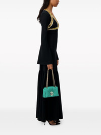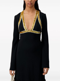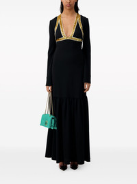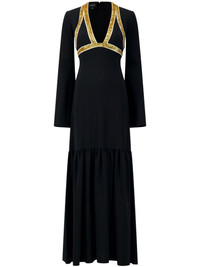 sequin-embellished crepe gown Crafted from fluid crepe, this black Giambattista Valli gown boasts a streamlined, floor-sweeping silhouette accented with scores of golden sequins, which frame the plunging V-neckline and bust. Highlights - Black - Crepe texture - Sequin embellishment - Plunging v-neck - Concealed rear zip fastening - Long sleeves - Tiered skirt - Floor-length - Flared hem Made in Italy Composition Viscose 50%, Acetate 47%, Elastane 3% Washing instructions Dry Clean Only