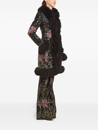 sequin-embellished floral-embroidered coat Highlights - Black - Sequin embellished - Floral embroidery - Frayed fur trim - Long sleeves Made in Italy Composition Artificial Fur 100%, Polyester 55%, Viscose 45% Washing instructions Read Manufacturer Guidelines