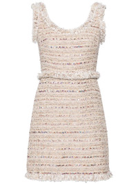 sequin-embellished tweed dress Highlights - Beige - Tweed - Sequin embellishment - Ruffled detailing - Scoop neck - Rear zip fastening - Sleeveless - Frayed hem - Thigh-length Made in Italy Composition Outer: Polyester 51%, Wool 18%, Polyamide 13%, Virgin Wool 10%, Cotton 6%, Fabric 1%, Metallic Fibre 1% Lining: Silk 100% SIZE & FIT Model measurements Height 5 ft 9 in(1.76 m) Bust/Chest 29.13 in(74 cm) Hips 33.07 in(84 cm) Waist 22.83 in(58 cm) FittingInformation Designed for a close fit at the chest and waist with a loose fit at the hip Made from a midweight non-stretch fabric This piece fits true to size – take your usual size