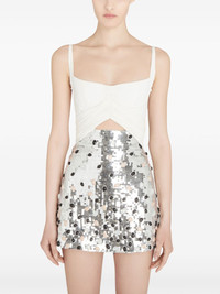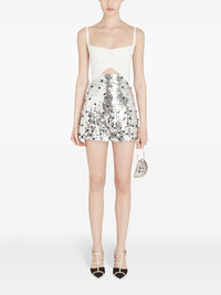 sequin embellishment short dress Highlights - White/silver - Silk - Crepe texture - Sequin embellishment - Concealed rear zip fastening - Square neck - Openwork areas - Sleeveless - Underwire cup - Thigh-length - Straight hem Made in Italy Composition Silk 100%, Stone 100%, Sequin 100% Washing instructions Dry Clean Only