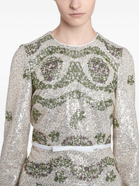 sequin-embroidered long dress Highlights - Silver-tone - Sequin embellishment - Embroidered floral pattern - Long sleeves - Round neck - Floor-length skirt Made in Italy Composition Polyamide 70%, Viscose 30% Washing instructions Read Manufacturer Guidelines
