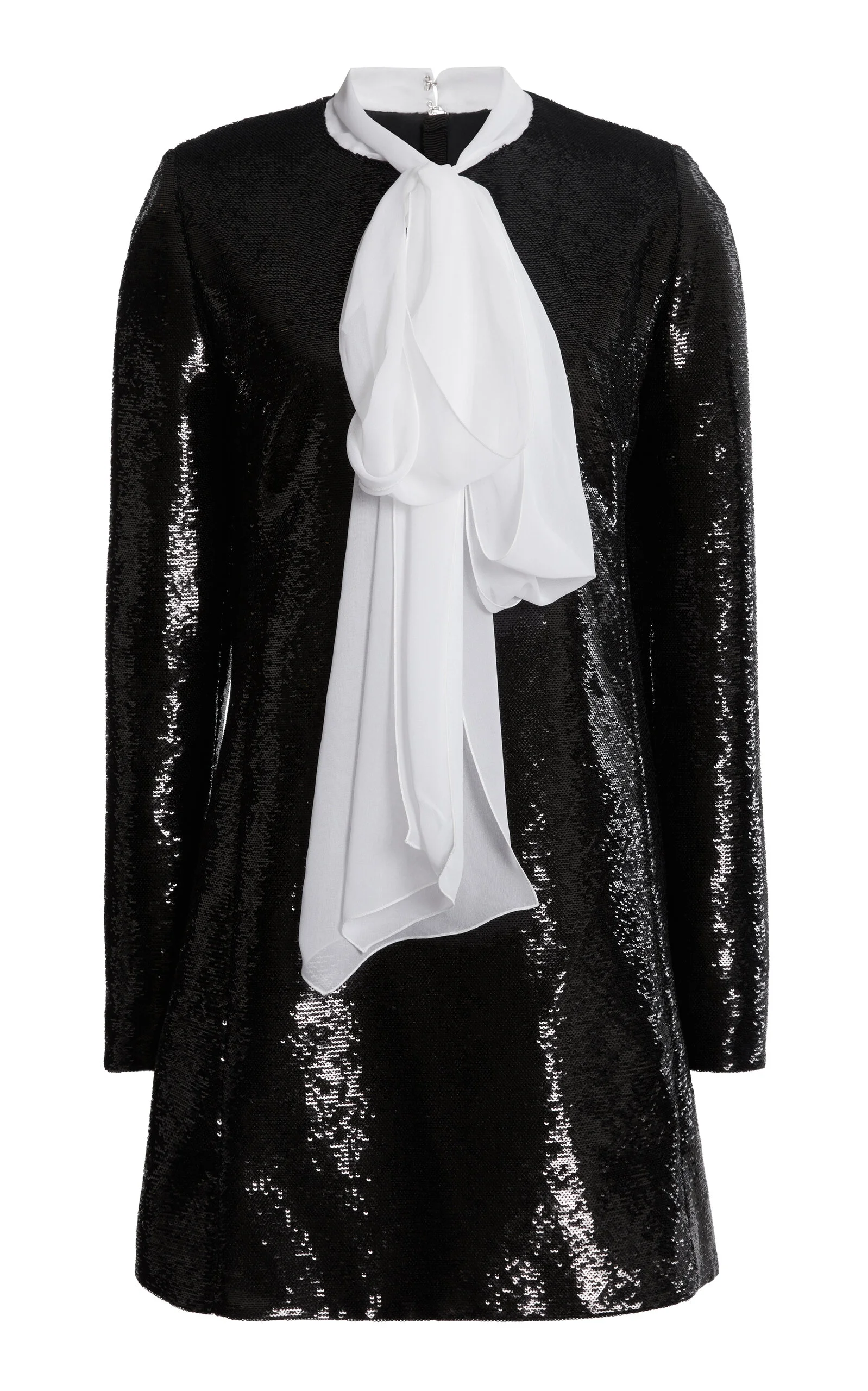PRODUCT DETAILS - Slim fit, long sleeves, crew neck, scarf detail - Back zipper fastening - Lined - Composition: Sequins - Color: black - Dry clean - Pre Fall '25