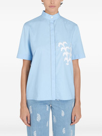 short sleeve shirt Highlights - Blue - Front button fastening - High neck - Straight hem Made in Italy Composition Cotton 96%, Polyester 4%
