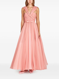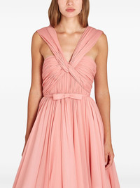 silk flared midi dress Highlights - Coral pink - Concealed rear zip fastening - V-neck - Sleeveless - Pleated skirt Made in Italy Composition Silk 100% SIZE & FIT FittingInformation This piece fits small – take one size up. If you have curvy hips you may wish to take a further size up Washing instructions Dry Clean Only