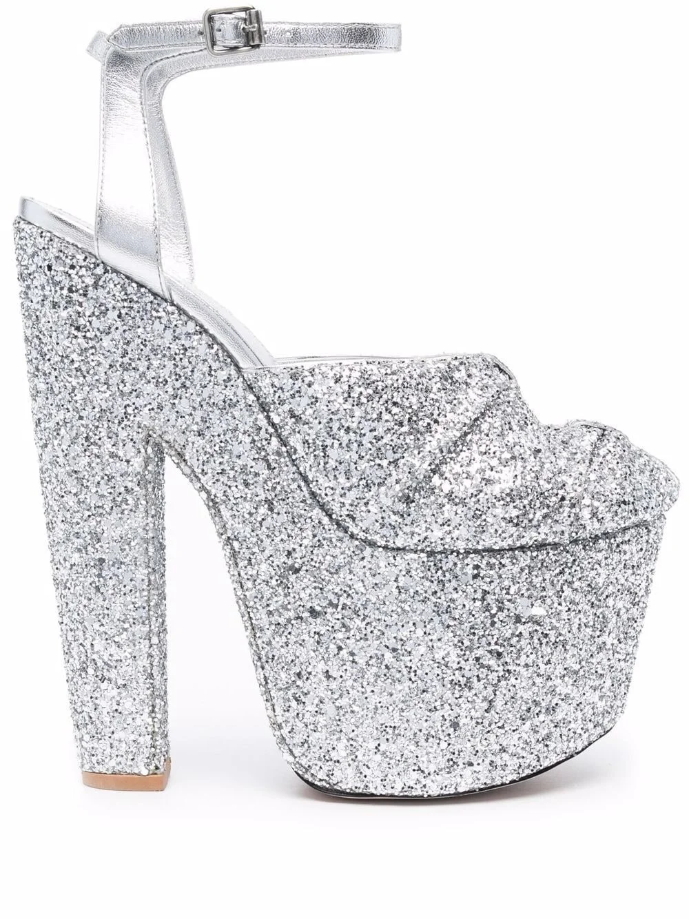 195mm glittered platform pumps Highlights - Silver - Leather - Sequin detailing - Platform sole - High block heel - 19.5cm heel Made in Italy Composition Outer: Leather 100%, PVC 100% Lining: Leather 100% Sole: Leather 100% SIZE & FIT Measurement CIRCUMFERENCE 8.66 in(22 cm) HEEL 7.67 in(19.5 cm) PLATFORM 2.95 in(7.5 cm)