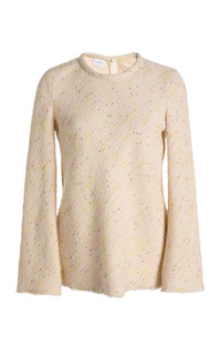 PRODUCT DETAILS - Slim fit, 3/4-length sleeves, crew neck - Back zipper fastening - Composition: Boucle - Color: Ivory/Yellow - Dry Clean - Fall '25