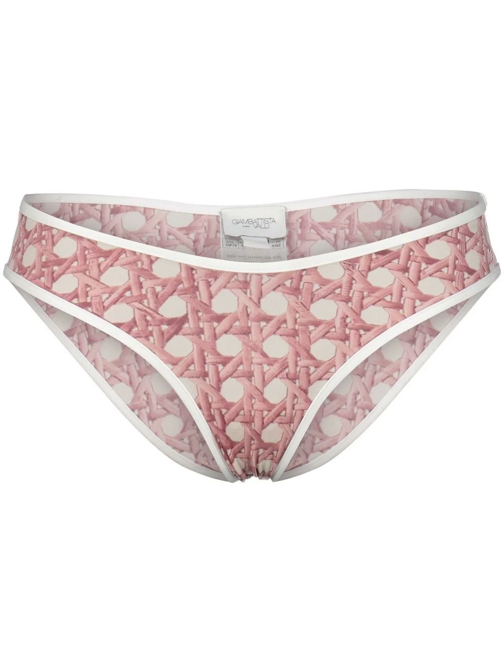 trompe-l'œil bikini Giambattista Valli's bikini features a open-knit print creating a trompe-l'œil effect. The racerback top lends a sporty feel. Made in Italy Composition Top: Polyamide 72%, Elastane 28% Washing instructions Dry Clean Only