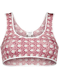 trompe-l'œil -effect bikini Giambattista Valli's bikini features a open-knit print creating a trompe-l'œil effect - an emblem running throughout the SS23 collection. The racerback silhouette of the top lends a sporty feel. Highlights - Dark pink - White - Trompe l'oeil print - Stretch-design - Scoop neck - Full lining - Be mindful to try on swimwear over your own garments. Made in Italy Composition Top: Polyamide 72%, Elastane 28% Washing instructions Dry Clean Only
