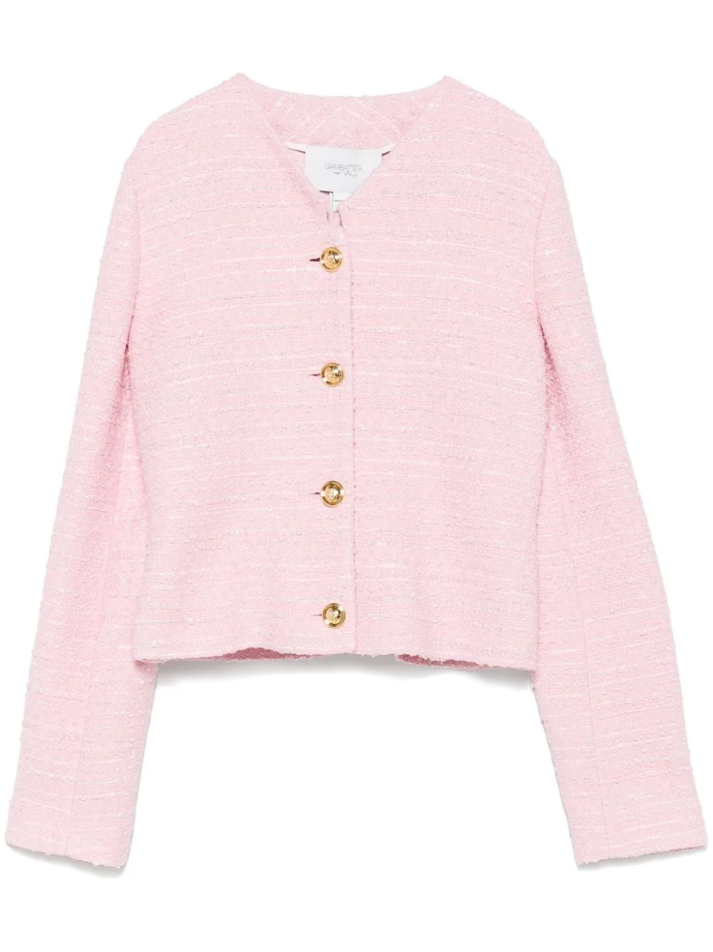 tweed jacket Highlights - Rose quartz pink - Front button fastening - Buttoned cuffs Made in Italy Composition Outer: Cotton 81%, Polyamide 18%, Polyester 1% Lining: Acetate 75%, Silk 25% SIZE & FIT Model measurements Height 5 ft 10 in(1.79 m) Bust/Chest 31.88 in(81 cm) Hips 35.43 in(90 cm) Waist 23.62 in(60 cm) Measurement CHEST 33.85 in(86 cm) SLEEVE LENGTH 25.59 in(65 cm) LENGTH 20.07 in(51 cm) WAIST 29.92 in(76 cm) FittingInformation Designed for a slim fit that sits just away from the body offering a close yet comfortable fit Made from a midweight non-stretch fabric