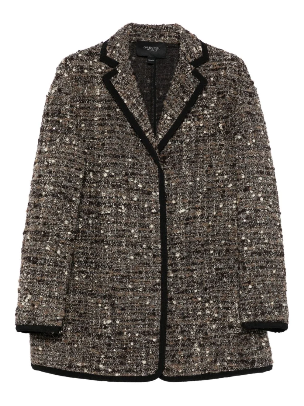 tweed trimmed coat Highlights - Grey - Tweed texture - Notched lapels - Black trim - Long sleeves Made in Italy Composition Fabric 100% SIZE & FIT Model measurements Height 5 ft 11 in(1.8 m) Bust/Chest 31.49 in(80 cm) Hips 36.61 in(93 cm) Waist 24.4 in(62 cm) Washing instructions Read Manufacturer Guidelines