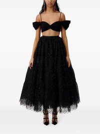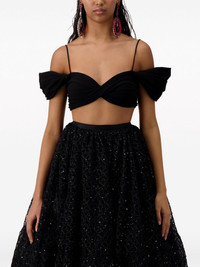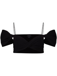 twisted off-shoulder bandeau top Giambattista Valli cites Josephine de Beauharnais, Napoleon Bonaparte’s wife of five years, as its muse for AW23. Seen on the runway, this black jersey bandeau top is a bold take on bygone fashion. It’s twisted to create a sweetheart neckline and voluminous off-shoulder sleeves. Slender shoulder straps keep it in place. Highlights - Black - Stretch-jersey - Twist detailing - Off-shoulder - Sweetheart neck - Spaghetti straps - Short puff sleeves - Cropped Made in Italy Composition Viscose 59%, Elastane 41%