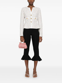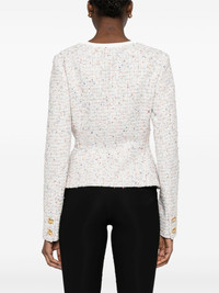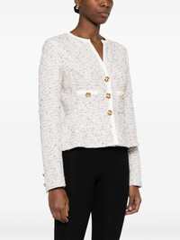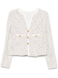 v-neck tweed jacket Highlights - White - Front button fastening - Two front patch pockets - Long sleeves - Buttoned cuffs Made in Italy Composition Outer: Cotton 43%, Polyamide 32%, Viscose 11%, Virgin Wool 7%, Polyester 5%, Acrylic 2% Lining: Acetate 75%, Silk 25% SIZE & FIT Model measurements Height 5 ft 10 in(1.78 m) Bust/Chest 31.49 in(80 cm) Hips 37 in(94 cm) Waist 23.62 in(60 cm) Measurement SLEEVE LENGTH 24.4 in(62 cm) LENGTH 20.47 in(52 cm) Shoulder Width 14.96 in(38 cm) FittingInformation Designed for a close fit at the chest and waist with a loose fit at the hip Made from a midweight non-stretch fabric