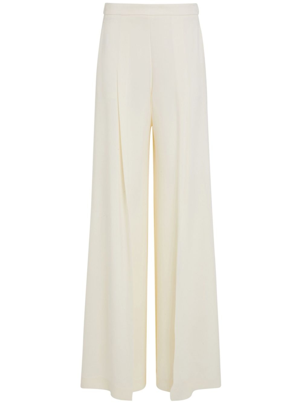 wide-leg trousers Highlights - White - Concealed side zip fastening - Two side slash pockets - Palazzo design - Pleat detailing Made in Italy Composition Lining: Acetate 75%, Silk 25% Outer: Acetate 96%, Elastane 4%
