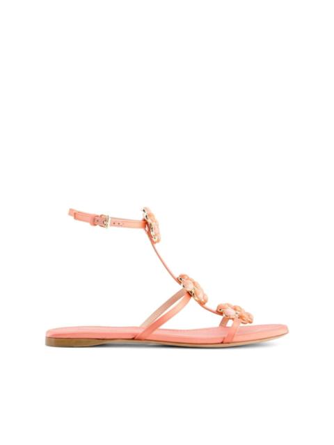 flower-detailing leather sandals Highlights - Peach pink - Calf leather/silk - Faux-flower detailing - Side buckle fastening - Branded footbed - Leather sole Made in Italy Composition Silk 100% Washing instructions Do Not Wash/Do Not Dry Clean