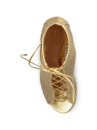 lace-up peep-toe pumps Highlights - Gold-tone - Peep toe - Stiletto heel - Lace-up fastening Made in Italy Composition Outer: Calf Leather 100%, Fabric 100% Lining: Calf Leather 100% Sole: Calf Leather 100% SIZE & FIT Measurement HEEL 4.52 in(11.5 cm)