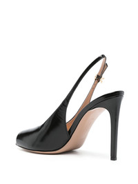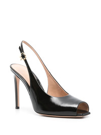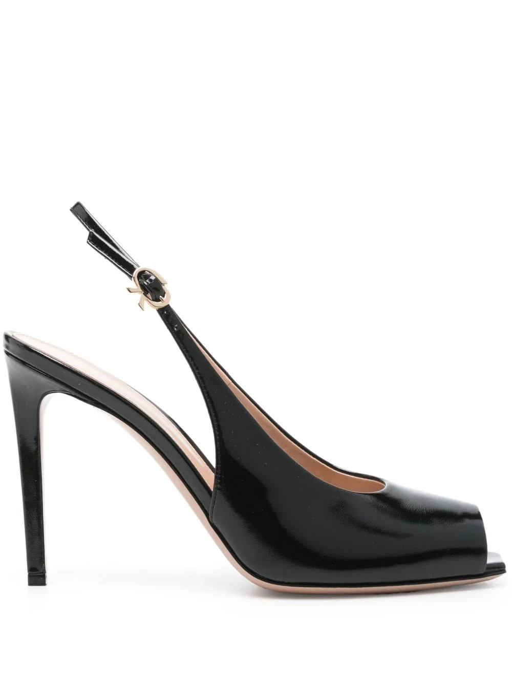 105mm leather sandals Highlights - Black - Buckle-fastening slingback strap - Branded leather insole - Stiletto heel - Square open toe Made in Italy Composition Sole: Calf Leather 100% Outer: Calf Leather 100% Lining: Calf Leather 100% SIZE & FIT Measurement HEEL 4.13 in(10.5 cm)
