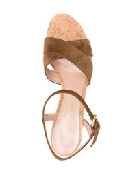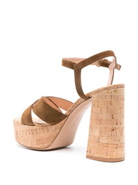 128mm suede platform sandals Echoing the brand's feminine and alluring aesthetic, Gianvito Rossi presents these sandals. Constructed from calf suede, this brown pair features crossover straps and rest atop a cork platform sole. Highlights - Brown/beige - Calf suede/calf leather - Crossover strap at the toe - Almond open toe - Buckle-fastening ankle strap - Branded footbed - Cork platform sole - 128mm high block heel - This piece comes complete with a protective dust bag. Made in Italy Composition Suede 100% SIZE & FIT Measurement HEEL 5.03 in(12.8 cm) PLATFORM 1.96 in(5 cm)