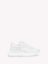 24 is a lace-up runner shoe crafted from soft leather and tonal recycled nylon. Finished with soft leather lining and technical mesh fabric, the design also features tonal laces and a removable cushion insole. The brand logo is lasered on the heel. Handmade in Italy. - Composition: 70% CALF + 30% FABRIC - Heel height: 0 - Model Code: S25310.W1WHT Item ID: S25310.W1WHT.CFSBIBI