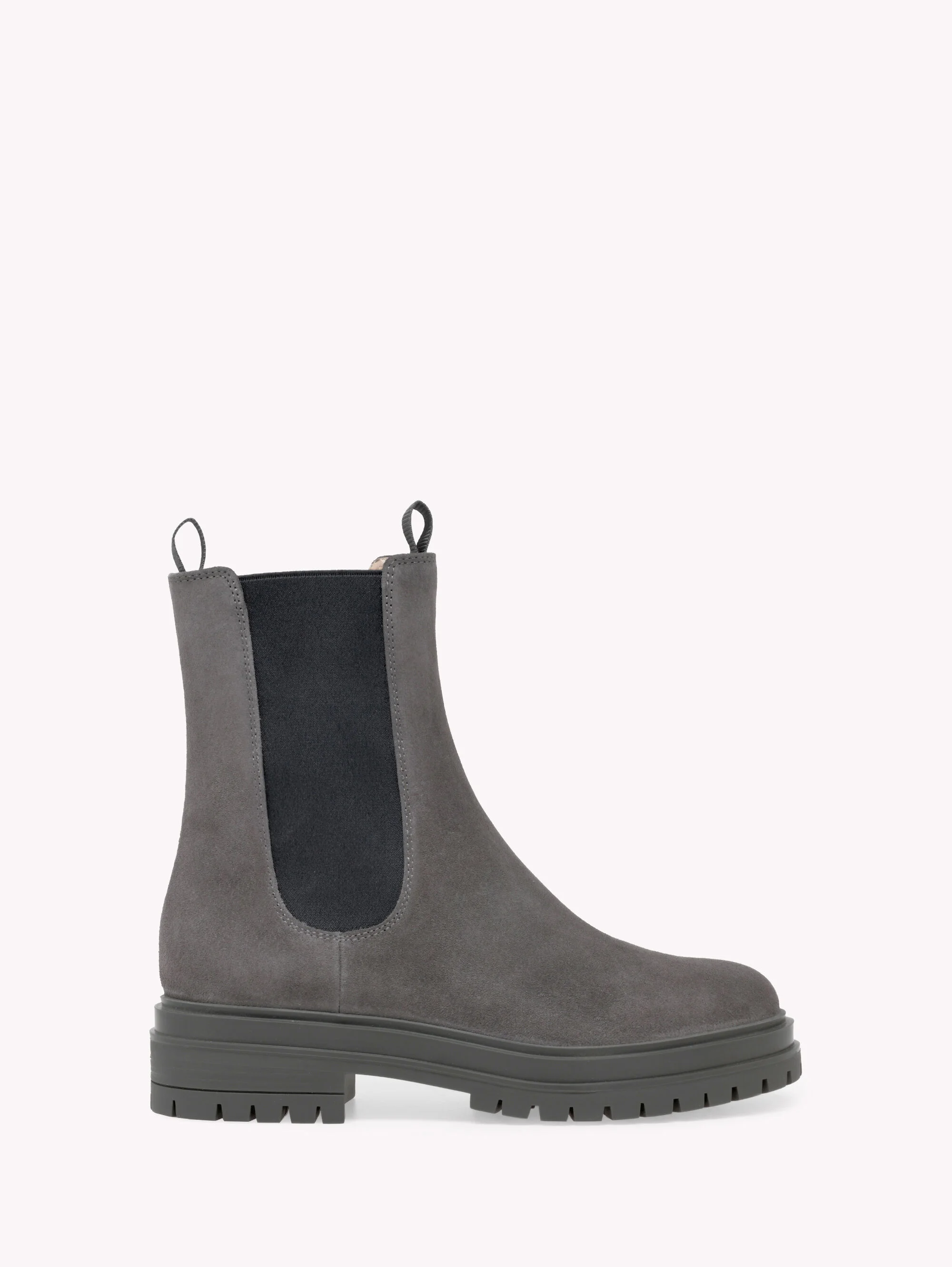 Crafted from suede, Chester is a round toe Chelsea fitted bootie. The tonal rubber lug sole measures approximately 25mm at the front and 40mm at the back. The elastic sides help with the fit. Handmade in Italy. - Heel Height: 0.8 inches / 20 mm - Model Code: G73462.20GOM Item ID: G73462.20GOM.SUELAPI