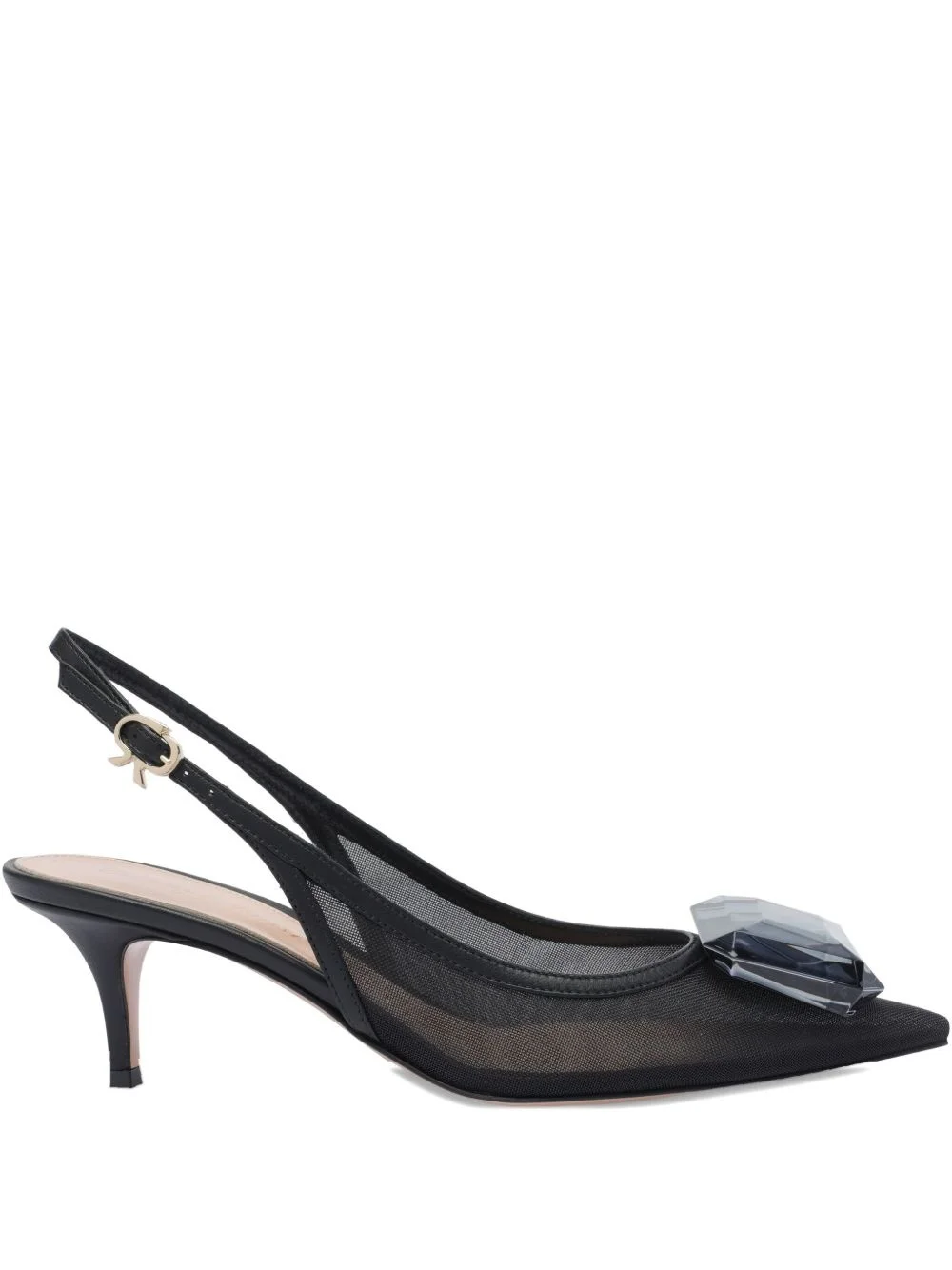 55mm slingback mesh pumps Highlights - Black - Mesh upper - Pointed toe - Slingback strap - Buckle fastening - Crystal embellishment Made in Italy Composition Lining: Calf Leather 100% Outer: Mesh 100% Sole: Leather 100% SIZE & FIT Measurement HEEL 2.16 in(5.5 cm)