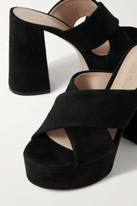 EDITORS'NOTES Gianvito Rossi's platform sandals have been expertly crafted in Italy from smooth nubuck. They're set on lofty 70mm heels balanced by sturdy platforms and have wide crisscrossing straps. Wear yours with dresses and jeans alike. SIZE & FIT - Fits small to size, take a half size larger than normal - Italian sizing DETAILS & CARE - Heel measures approximately 70mm/ 3 inches with a 30mm/ 1 inch platform - Black nubuck - Slip on Small to size. See Size & Fit notes.