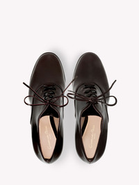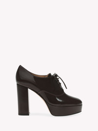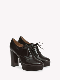 Crafted from Nuit, the Maison's distinctive leather with a glossy finish, Vicky is a round toe lace-up Oxford style with a 30mm platform and a 100mm chunky heel. Handmade in Italy. - Composition: 100% NAPPA - Heel Height: 2.8 inches / 70 mm - Model Code: G25323.70RIC Item ID: G25323.70RIC.NUIBOUR