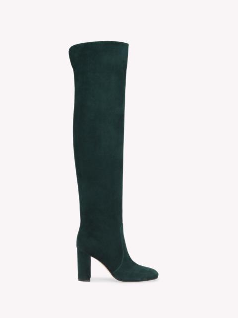 Crafted from supple suede, Glen Cuissard is a pull-on over-the-knee boot with a round toe and an 85mm chunky heel. Handmade in Italy. - Composition: 100% SUEDE - Heel Height: 3.3 inches / 85 mm - Model Code: G80145.85RIC Item ID: G80145.85RIC.C45MOKA