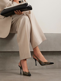 85 patent leather-trimmed PVC slingback pumps Black
