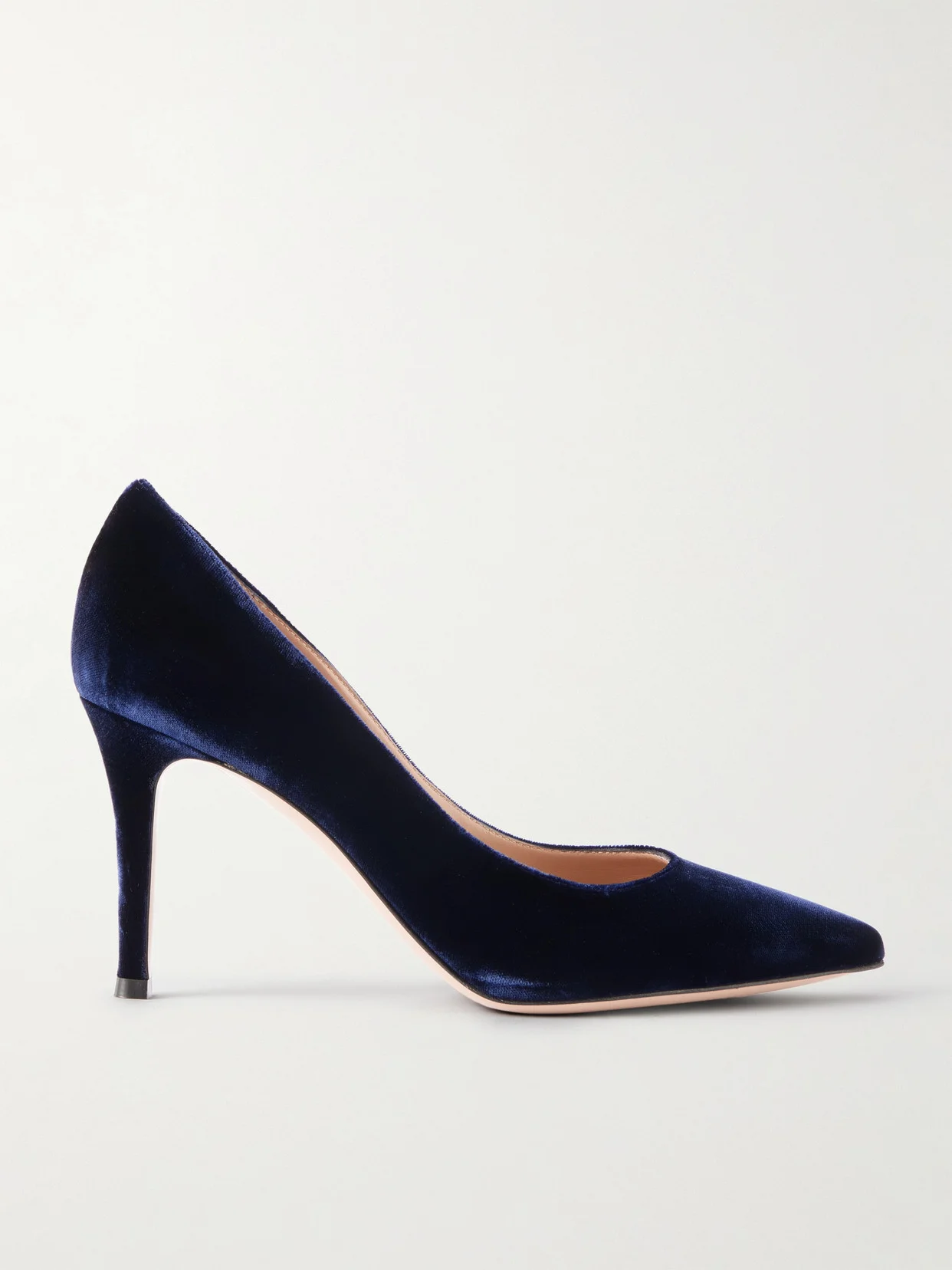 Adding luxurious texture to your outfit, Gianvito Rossi's pumps are made from smooth velvet with a beautiful sheen. They're designed in a timeless point-toe shape and rest on 85mm stiletto heels.