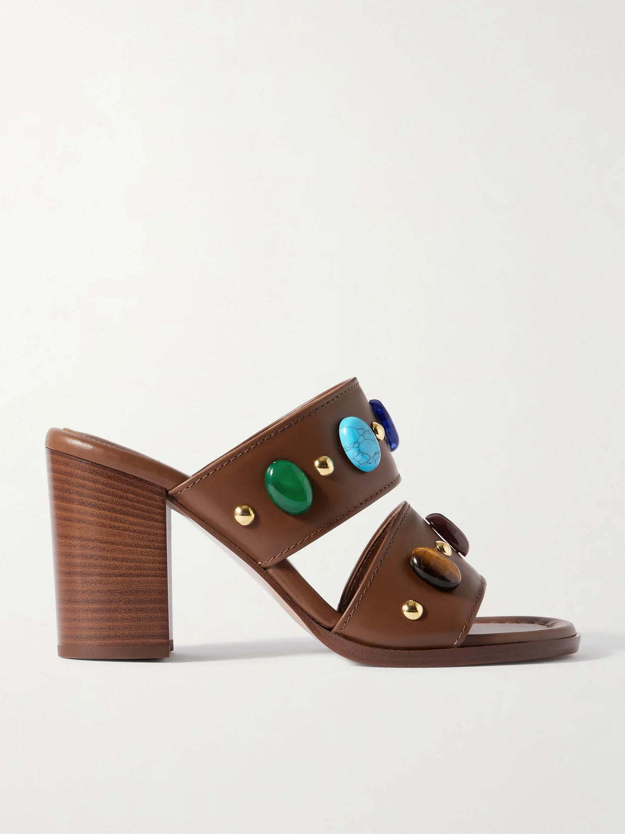 Gianvito Rossi's sandals will make a statement, wherever you choose to wear them. Made in Italy from leather, they're adorned with an array of gemstones and are punctuated with gold-tone studs. Wear yours with a midi dress or flared denim.