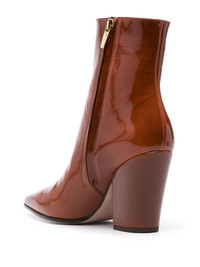90mm patent ankle boots Highlights - Rust brown - Side zip fastening - Rubber sole - Branded leather insole - Pointed toe Made in Italy Composition Sole: Calf Leather 100%, Rubber 100% Lining: Calf Leather 100% Outer: Calf Suede 100% SIZE & FIT Measurement HEEL 3.54 in(9 cm)