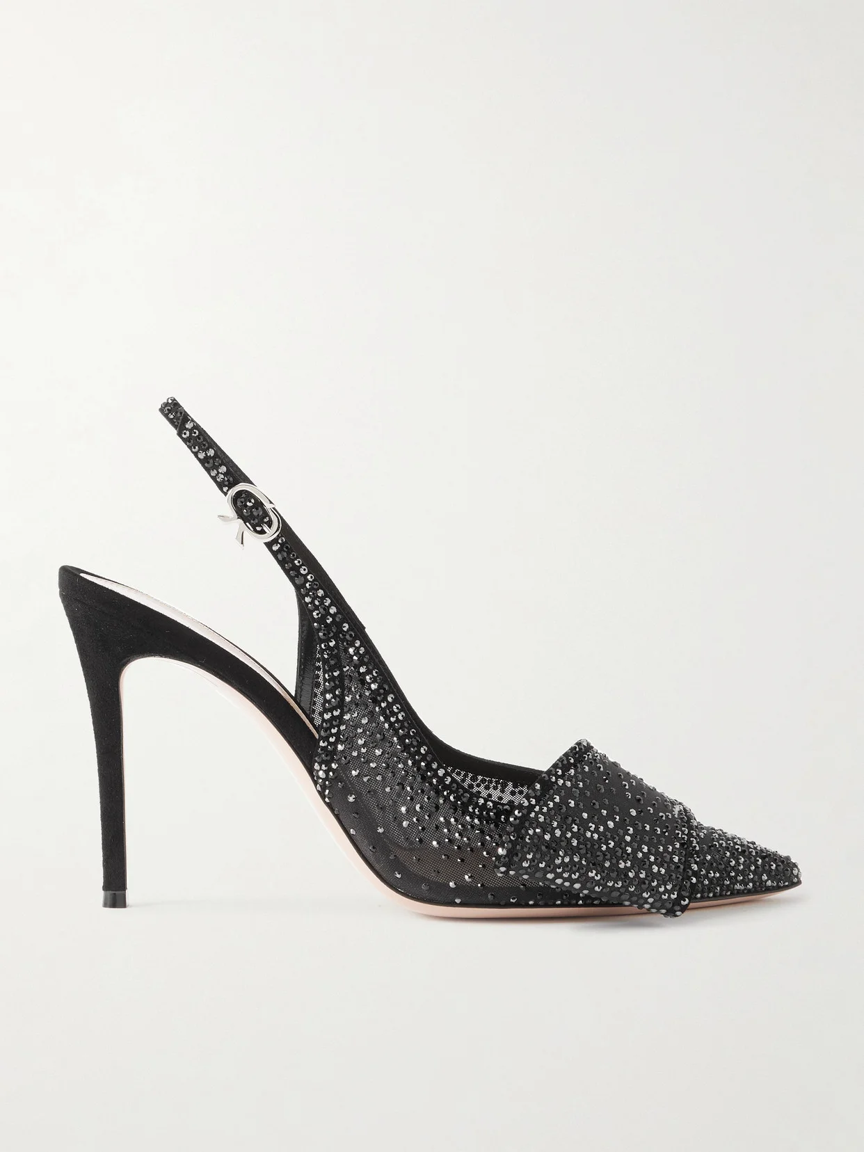Gianvito Rossi believes in the transformative effect of the right pair of shoes - particularly styles that boost confidence. These point-toe pumps are made from semi-sheer organza, trimmed with plush suede and are adorned with glinting crystals. The slingback straps ensure a secure fit.