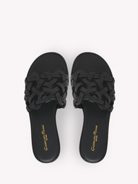 Crafted from soft leather, Amalfi is a round toe flat slide with an 11mm stack heel. The design presents the new signature "Amalfi" weaved upper. Handmade in Italy. If you wish to return a product, you can return it for free within 30 days of the reception of your order. Please return the items in the same condition in which they were received, including dustbag, box and protective stickers. Incomplete, damaged, worn or altered items cannot be accepted as stated in our Terms and Conditions . Standard shipping FREE (3-5 business days) Express shipping $60 (1-3 business days) Deliveries are made from Monday to Friday between 9:00 a.m. and 6:00 p.m. The time frame for delivery is calculated from the time your order is dispatched, not from the time your order was placed. Please check our Shipping page for further information. - Composition: 100% CALF - Heel height: 0.2 inches / 5 mm - Model Code: G15970.05CUO Item ID: G15970.05CUO.CLNNERO