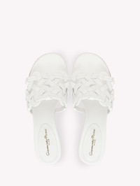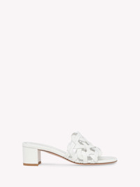 Crafted from soft leather, Amalfi 45 is a round toe mule with a 45mm block heel. The design presents the new signature "Amalfi" weaved upper. Handmade in Italy. - Composition: 100% CALF - Heel Height: 1.8 inches / 45 mm - Model Code: G10025.45RIC Item ID: G10025.45RIC.CLNBIAN