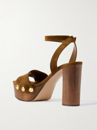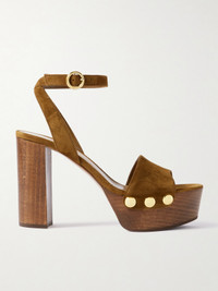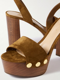 Gianvito Rossi's platform sandals channel retro glamour with a sleek, modern edge. Crafted in Italy from velvety suede, they rest on wooden platform soles and are adorned with gold-tone studs. Let them anchor evening looks, from sharp tailoring to floaty dresses.