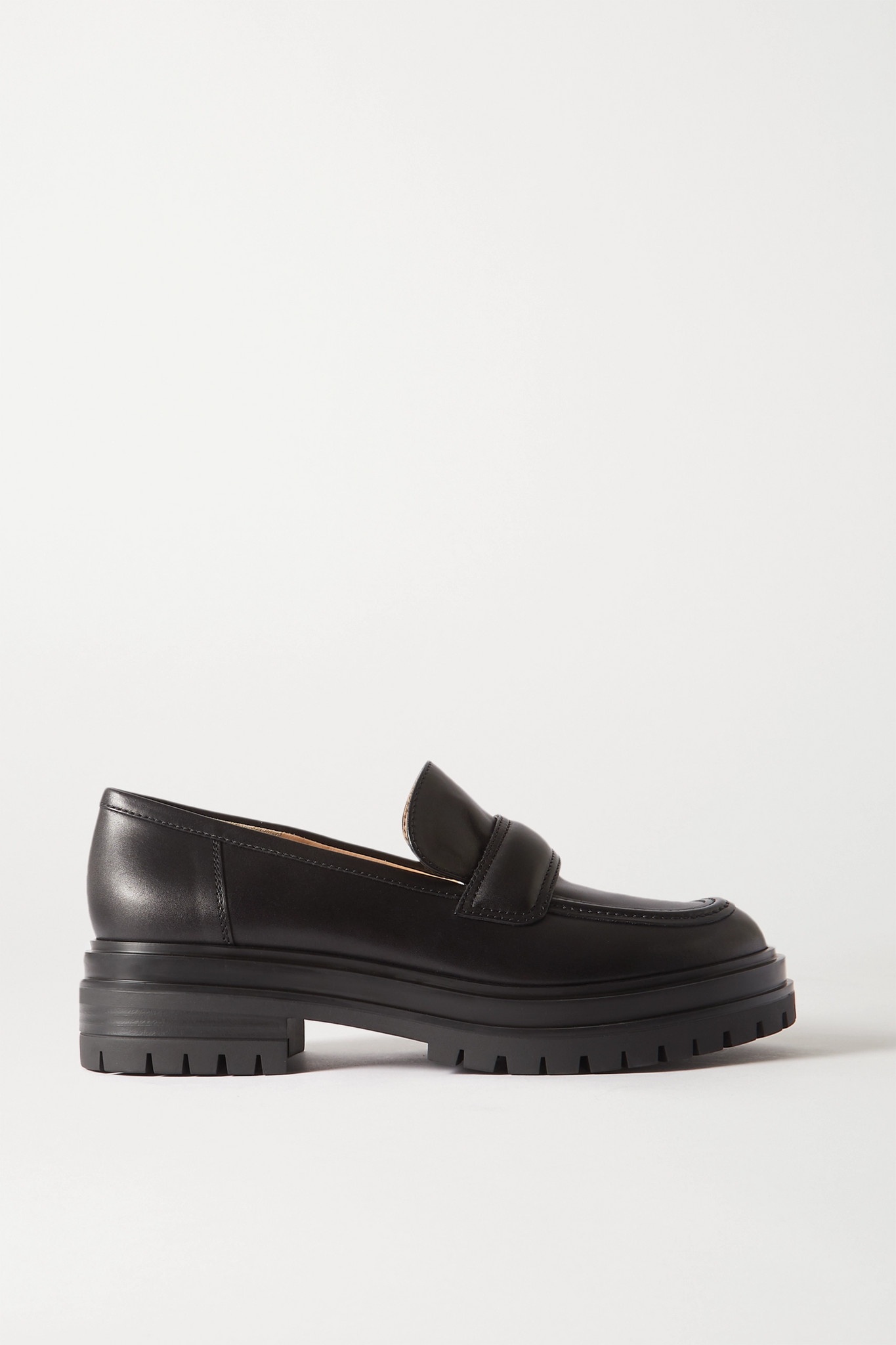 EDITORS'NOTES The epitome of comfort and classic style, Gianvito Rossi's loafers are the perfect finishing touch to sophisticated daytime outfits. They've been crafted in Italy from black leather and rest on chunky gripped soles. Wear yours with cropped tailoring.<br><br>Wear it with: [Simone Rocha Shirt id1278358], [Maison Margiela Shorts id1201792], [Prada Shoulder bag id1278657]. SIZE & FIT - Fits true to size, take your normal size - Italian sizing DETAILS & CARE - Heel measures approximately 20mm/ 1 inch - Black leather (Lamb) - Slip on - Made in Italy