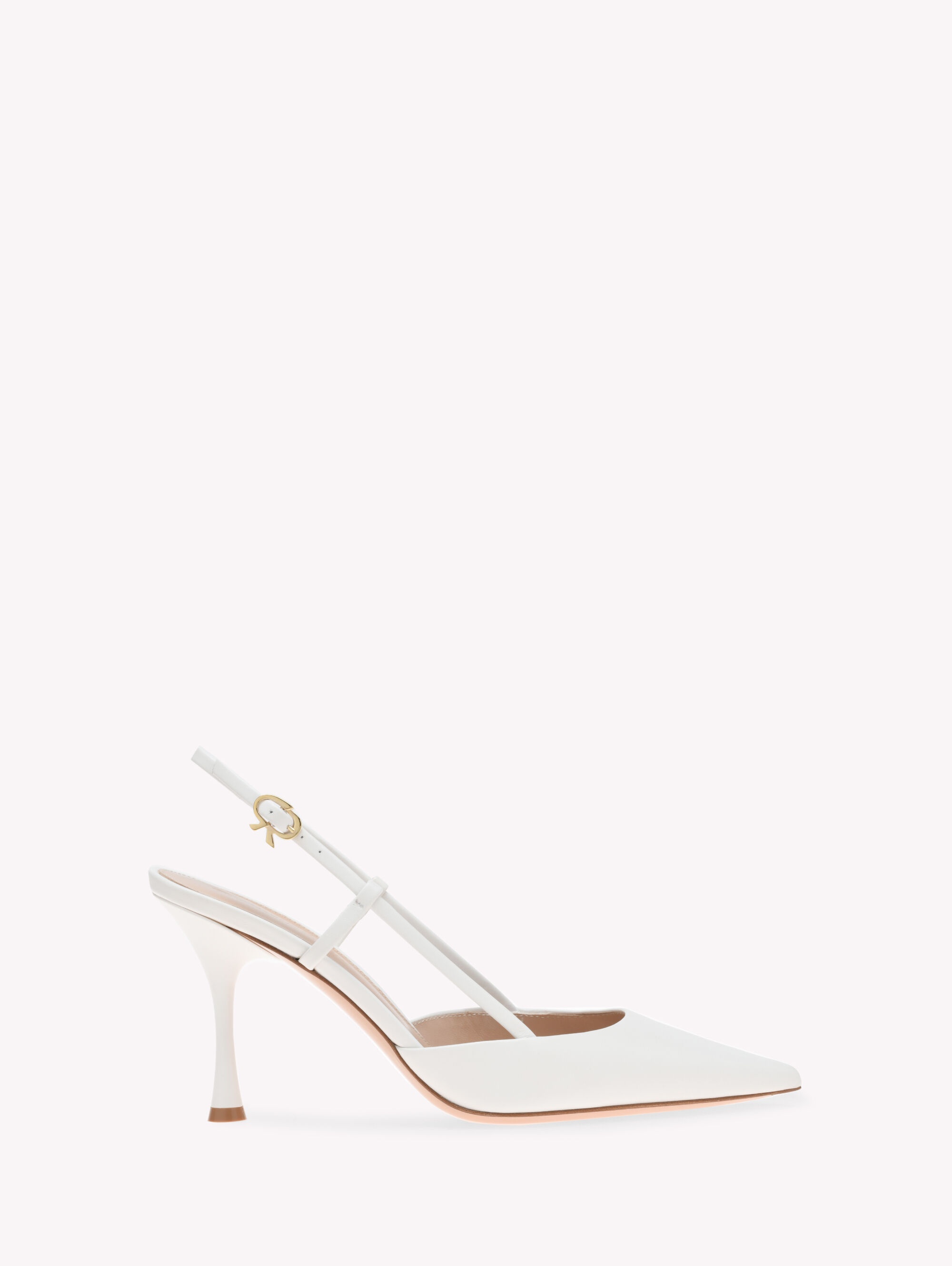 Set on an sleek 85mm hourglass heel, Ascent is a sophisticated pointed-toe slingback. The iconic Ribbon buckle in gold metal, signature of the brand, elegantly enriches the ankle strap. Handmade in Italy as in the best artisanal tradition. - Composition: 100% CALF - Heel height: 85 - Model Code: G95335.85LAC Item ID: G95335.85LAC.VITBIAN