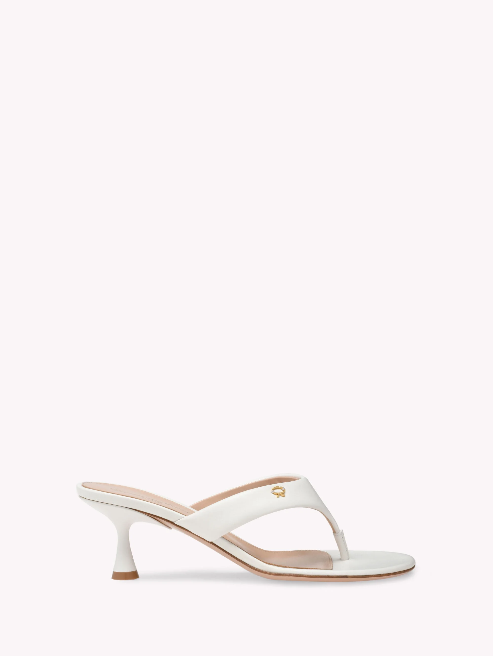 Crafted from soft precious leather, Ascent Thong 55 is a thong sandal with a round toe and a tonal laquered flare 55mm kitten heel. The design is enriched with the metallic Ribbon detail, signature of the Maison. Handmade in Italy. - Composition: 100% NAPPA - Heel Height: 2.2 inches / 55 mm - Model Code: G10057.55LAC Item ID: G10057.55LAC.NAPBIAN