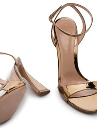 Aura 105mm patent-leather sandals The X usually marks the spot where the treasure is. But when it comes to these Gianvito Rossi sandals, there's no need for you to look further or to dig, for that matter. Ready to strike gold? Highlights - Gold-tone - Patent-leather - High-shine finish - Branded insole - Open toe - Buckle-fastening ankle strap - High sculpted heel Made in Italy Composition Lining: Leather 100% Sole: Leather 100% Outer: Patent Leather 100% SIZE & FIT Model measurements Height 5 ft 10 in(1.79 m) Bust/Chest 33.1 in(84 cm) Hips 37 in(94 cm) Waist 25.6 in(65 cm) FittingInformation This piece fits small - you might like to get one size up Measurement HEEL 4.9 in(12.5 cm) HEIGHT 3.1 in(8 cm)