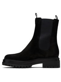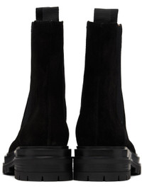 Handcrafted ankle-high suede Chelsea boots. · Pull-loops at collar · Elasticized gusset at sides · Buffed leather lining · Treaded rubber sole Supplier color: Black Upper: leather. Sole: rubber. Made in Italy 252090F113006