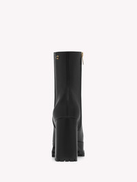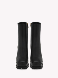 Enriched with the mini Ribbon detail, Harlem is a squared-toe leather bootie with a rubber lug sole and a zip in the inside. The platform measures 35mm wheres the heel measures 105mm. Handmade in Italy. - Heel Height: 2.8 inches / 70 mm - Model Code: G73178.70GOM Item ID: G73178.70GOM.VGINERO