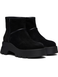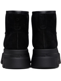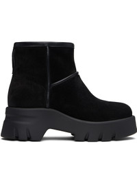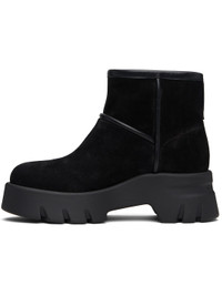 Handcrafted ankle-high lambskin suede boots. · Grained lambskin piping throughout · Pull-loop and embossed logo at collar · Shearling lining · Logo embossed at heel · Rubber sole Supplier color: Black Upper: lambskin. Sole: rubber. Made in Italy 252090F113004