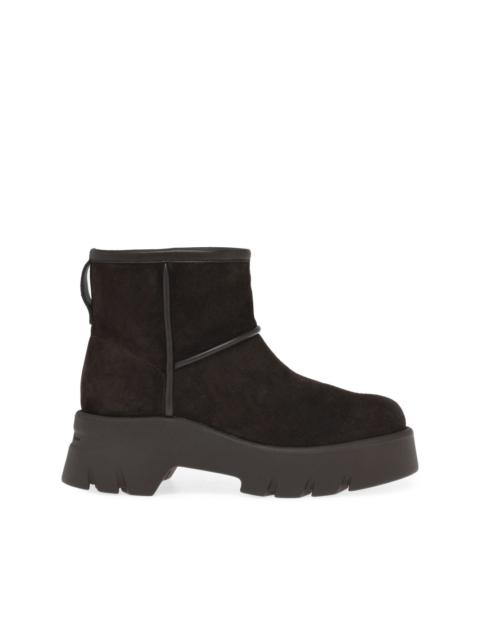 Stormy boots Highlights - Black - Calf suede - Leather trim - Round toe - Logo pull-tab at the heel - Branded insole - Shearling lining - Chunky rubber lug sole - Pull-on style Made in Italy Composition Leather 100% SIZE & FIT Measurement CIRCUMFERENCE 11.02 in(28 cm) HEEL 2.16 in(5.5 cm) HEIGHT 4.72 in(12 cm) Sole height 1.37 in(3.5 cm)