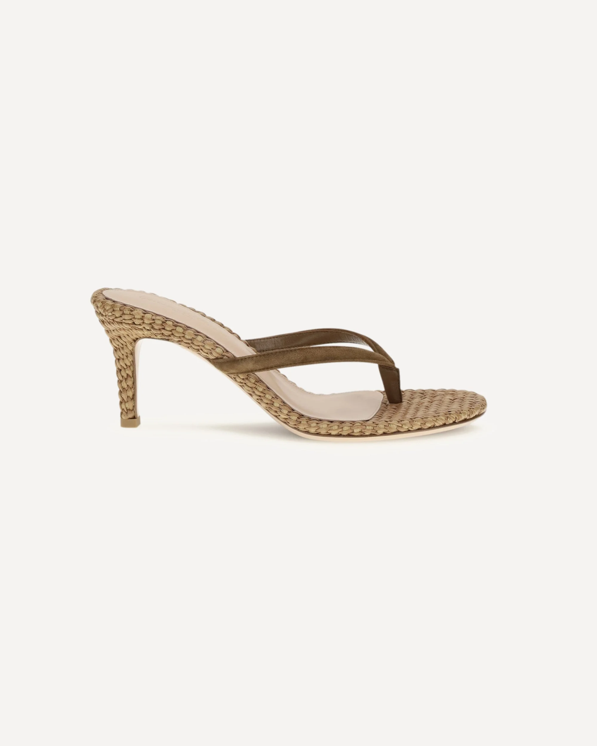 The Calypso Sandals by Gianvito Rossi, with their slip-on style, stand out for their high stiletto heel and thong strap, which elegantly enhance the silhouette. The branded footbed guarantees comfort without compromising on style, making them ideal for those looking for a sophisticated and feminine design. Perfect for special evenings or elegant events. DETAILS - Sku: G1126070RICCBL_TECU - Season: SS26 - Composition: GENERAL 100% Raffia - MADE IN ITALY